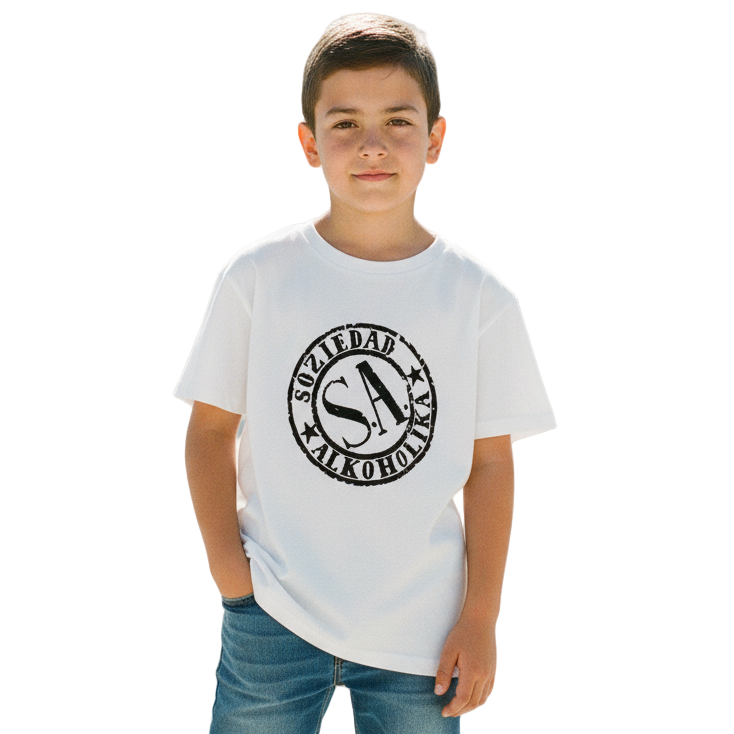 Camiseta Niño Manga Corta – Blanca – Sello Soziedad Alkoholika.